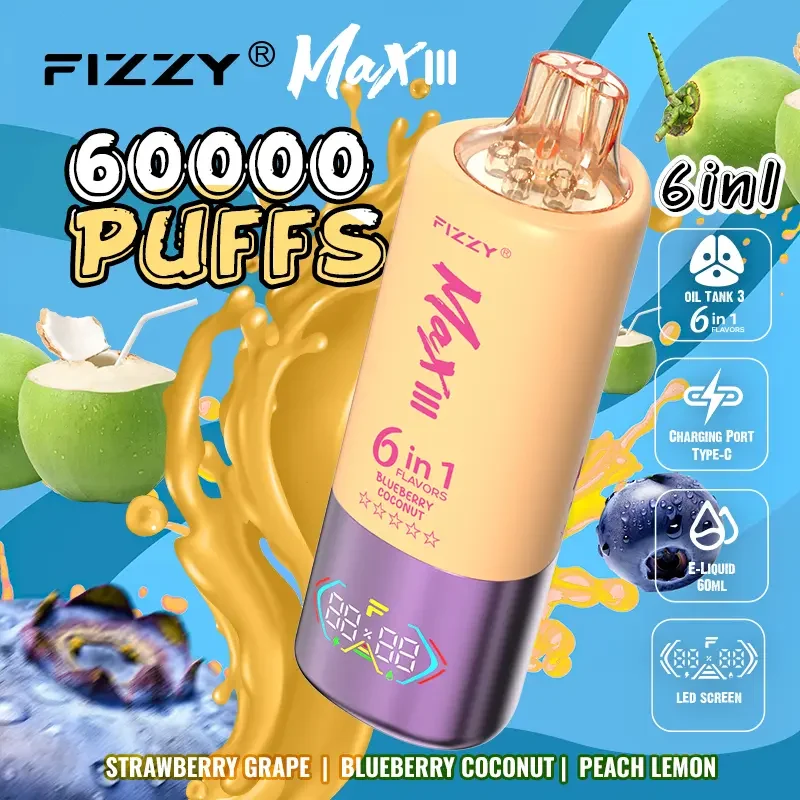 1. Massive 60k Puff Capacity Equipped with a colossal 60ml e-liquid reservoir, the Fizzy Max lll delivers a true Puff 60k experience. It is built to outlast unmatched competitors, making it the ultimate choice for value and convenience.